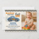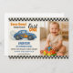 Charmantes Rennwagendesign in Aquarellfarbe mit fett orangen und blauen Farbtönen, perfekt zum ersten Geburtstag eines kleinen Jungen. Kunstwerke mit kreativer Farbgebung auf der Rückseite.
