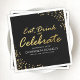 Personalisierte Beerdigungsservietten mit einem stilvollen schwarzen Hintergrund, der in jede beliebige Farbe verändert werden kann, funkelnd Glitzer mit Gold, das Wort "essen, trinken und feiern", der Name Ihrer Lieben und ihr Geburts- und Sterbedatum.