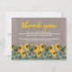 Begräbnisdanken Sie notieren auf einer flachen Einladungskarte ist eine einfache Möglichkeit, denen zu danken, die Ihnen Trost während Ihres Aufenthalts gezeigt haben. Diese rustikale Dankeschön-Karte verfügt über einen Barnholzhintergrund, eine Reihe hellgelber Sonnenblumen und ein personalisiertes Dankeschön-Template.