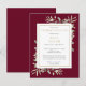 Eine elegante Feier des Fotos Gedenkens Einladung Postcard mit botanischem botanischem Blumengrün in Aquarell auf bordeauxrotem Hintergrund. Entwickelt von Thisisnotme©