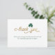 Diese elegante und elegante Dankeschön-Karte verfügt über ein grünes vierblättriges Kleeblatt (Kleeblatt) über den Worten "Danke" in einem goldenen (simulierten Folie) Schriftart. Der Hintergrund ist weiß, kann aber in eine beliebige Farbe geändert werden. Die Rückseite der Karte ist grün und kann auch in eine beliebige Farbe geändert werden.