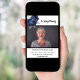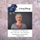 Mit dem Text: In Love Memory. Personalisieren und hinzufügen eines Fotos, Namens und Datums. Weißer Hintergrund, schwarzer Text. Die Einrichtung ist mit blauen Blumen geschmückt. Ein Rahmen aus schwarzem Foto.
