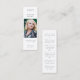 Moderne, einfache Foto Gedenkkarte Mini-Lesezeichen-Karte, um das Leben Ihrer Lieben in einem modernen minimalistisch eleganten Stil feiern. Das Template-Design kann leicht mit Ihrem eigenen Foto und Text personalisiert werden, um eine besondere Hommage an Ihre Lieben oder als Teil ihrer Beerdigung, Gedenkfeier oder Feier des Lebens zu schaffen. Das Design mit einem Gedicht oder Gebet. Das abgebildete Bild dient nur zur Veranschaulichung, um durch Ihr eigenes Foto ersetzt zu werden. Das Bild der Platzhalter ist eine wunderschöne Frau mit kurzem blonden Haar, die eine botanische Blumendecke trägt. Wenn Sie Hilfe bei der Personalisierung dieses Produktes benötigen, kontaktieren Sie mich bitte über den Meldungsknopf und ich helfe Ihnen gerne.