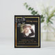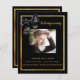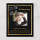 Ein elegantes zweiseitiges Programm. Ein schwarzer Hintergrund, ein goldener Rahmen für Imitate, ein schwarzer Bogen und Platz für ein Foto. Personalisieren und hinzufügen von Namen, Daten und Text.