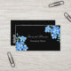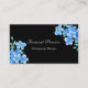 Klassischer schwarzer Hintergrund, blaue vergessene Blumen als Dekoration. Personalisieren und fügen Sie Ihr Unternehmen, den Firmennamen und einen Text auf der Vorderseite. Weiße Buchstaben Zurück: Vorlagen für Ihren Namen, Titel, Telefonnummer, E-Mail und Website-Adresse. Fügen Sie Ihren eigenen QR-Code zu Ihrer Website hinzu.