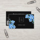 Klassischer schwarzer Hintergrund, blaue vergessene Blumen als Dekoration. Personalisieren und fügen Sie Ihr Firmenlogo und einen Text auf der Vorderseite. Weiße Buchstaben Zurück: Vorlagen für Ihren Namen, Titel, Telefonnummer, E-Mail und Website-Adresse. Fügen Sie Ihren eigenen QR-Code zu Ihrer Website hinzu.