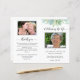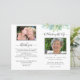 Geschmackvolle Beerdigungs-Gedenkprogramm mit dem Foto Ihrer verstorbenen Liebe eins, präsentiert durch schöne Aquarellendetails in hellen türkisfarbenen, blauen und grünen Farbtönen. Auf der Vorderseite unten verstorbenes Foto können Sie ihren Namen, ihre Geburt und das Sterbedatum, die Adresse und das Datum der Gedenkstätte angeben. Im Inneren des links, gibt es einen Bereich für den Nachfolger und rechts einen Bereich für den Auftrag. Auf der Rückseite gibt es die Möglichkeit, ein zweites Foto hinzuzufügen, ein Dankeschön-Nachricht und Anweisungen für nach der Beerdigung Richtungen. HINWEIS: Das Programm wird in einem flachen Blatt aus Papier geliefert, das nach Erhalt geklappt werden muss. Coordinating Celebration of Life Invitation Card, Gästebuch, Begrüßungsschild Foto und danke Ihnen Hinweise auch zur Verfügung. Teil unserer "Delikate Funeral, Memorial Collection".