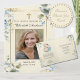 Mit einer wunderschönen katholischen Beerdigungskarten-Gedenkkarte für das Foto mit blauen Blumenmotiven und der gesegneten Mutter Mary, die den Jesus-Säugling hält. Alle Texte und Schriftart können geändert werden.