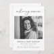 Mit unserem BeerdigungsMemorial In Loving Memory Beileid Foto Dankeschön und herzlich danken wir denjenigen, die in einer schwierigen Zeit ihre Unterstützung angeboten haben. Dieses elegante und gepflegte Design ermöglicht es Ihnen, die Karte mit einem hochgeschätzten Foto zu personalisieren und so einen sinnvollen Sake zu schaffen, der das Wesen des Gedächtnisses Ihres Lieben erfassen kann. Das minimalistische Design ist modern und einfach, sodass der Fokus auf Ihre Botschaft der Dankbarkeit liegen kann. Unsere Dankeschön-Karte ist ein Memento- und Erinnerungspfand, der von den Empfängern geschätzt wird. Die Karte eignet sich für Beerdigung, Gedenkfeiern und Feiern von Lebensereignissen. Zeigen Sie Ihre Wertschätzung für das Beileid, die Liebe und die Unterstützung, die Sie mit dieser eleganten und herzlichen Geste erhalten haben. Das gepflegte und moderne Design, kombiniert mit Ihrer persönlichen Touch, macht diese Karte zu einer wunderschönen und sinnvollen Art, Ihre Dankbarkeit in einer schwierigen Zeit zum Ausdruck zu bringen.