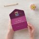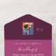 Das alles in einer Einladungskarte ist etwas Besonderes. Sie erhalten Ihre Einladungskarte und die RSVP-Karte in einem. Sie können die moderne und elegante Einladungskarte mit Ihrem Ehepaar, Foto, Intro, Namen, Anlass, Datum, Adresse, uAwg, Essen und anderen Hintergrundfarben Ihren Wünschen anpassen. Selbst das Bild ist veränderbar. Es zeigt eine harmonische Mischung aus stimmungsvollen lila- und Beerentönen und hat eine passende weiße Typografie. Es ist ein einfaches, minimales extravagantes Design mit lila und beertem Hintergrund. Sie können elegantes Siegel und senden Sie diese dreiseitige Budget Hochzeitseinladung. Schicken Sie den Abriss der UAWG Postkarte zurück an den Absender. Machen Sie dieses besondere Design und fühlen Sie sich wie der Prinz und Prinzessin auf Ihrer zukünftigen Hochzeit. Hobinishop