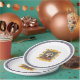 Feiern Sie Beethoven! Aus einer originalen Kunstserie von ZoeSPEAK von Tellern klassischer Musiksammler, zeigen diese Paper Teller ein Portrait des Komponisten Ludwig van Beethoven. Das Portrait ist eine handgetönte Ätzung, umgeben von einer Illustration eines verziert ovalen goldenen Rahmens. Der Rahmen ist auf einem Tapetenhintergrund mit gelben Sonnen und aufziehenden geflügelten Spirituosen gegen ein mittleres Blau. Unter dem roten Portrait ist der Name des Komponisten zu sehen. Die Tapete ist umgeben von mehr goldenen Bändern, in der Mitte der Platte vor einem weißen Hintergrund. Es gibt eine mittelblaue Band mit geflügelten Spirituosen und einem roten Rand um den Tellerrand.