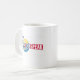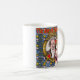 Im Originaldesign auf dieser Tasse identifiziert Zoe the Bilingual Dog (in Englisch und Französisch) einen Lieblingskomponisten, Ludwig van Beethoven. Das Portrait des Komponisten ist in einem verzierten goldenen Rahmen, auf einem Hintergrund in Blau.