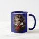 Posterized Porträt des Komponisten Ludwig von Beethoven mit gelegtem Autogramm.
