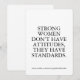 Feiern Sie erbitterte Weiblichkeit mit dieser kühnen Karte: "Starke Frauen haben keine Einstellungen, sie haben Standards." Ein mächtiges Geschenk für sie - perfekt für selbstbewusste Frauen, Mädchen und Freunde, die ihren Wert kennen. Ermächtigung, inspirier, Aufwertung. Frauenkarte, Frauenkarte, feministische Kurskarte, inspirierendes Geschenk für sie, Girl-Power-Karte, selbstbewusste Frauenkarte, Frauenkarte für sie, mutige Frauenkarte, motivierend Karte, Kurskarte, individuelle feministische Karte, starke Frauenkarte, Geschenk für selbstbewusste Frauen, Befähigungskarte, beste Freundin-Empowerment-Karte, Standards, keine Einstellungskarte Frauenkarte, feministische Mädchenkarte, Ermächtigungsgeschenk, Frauenkarte, individuelles Zitat, Frauenkarte, Frauenkarte, Frauenkarte, Frauenkarte, Frauenkarte, Frauenkarte, Frauenkarte, Frauenkarte, Frauenkarte, Frauenkarte, Mädchenkarte, inspirierend Nachrichtenkarte, Karte für starke Frauen