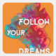 Befolgen Sie Ihre Träume Zitate farbige Blume Quadratischer Aufkleber