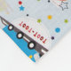 Busse, Autos, Flugzeug, Züge, Boote und LKW in lustigen illustrierten Mustern auf blau.