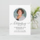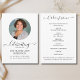 Personalisieren Sie dieses einfache und elegante Programm mit dem Namen, Foto in einem stilvollen Rundbogen und der Botschaft Ihres verstorbenen Lieben. Ehre und feiere das Leben deines Lieben mit dieser modernen und stilvollen Vorlage. Leicht zu anpassendes Text und Foto. Unser tiefempfundenes Beileid und unsere Gebete sind mit Ihnen in dieser sehr schwierigen Zeit.