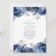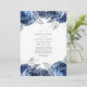 Navy und weiße Blumen Feier des Lebens Einladung mit silbernen Imitate Folie und elegante Typografie.