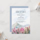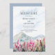 Kommen Sie mit uns in die Berge. Wasserfarbene Hochzeitseinladung mit idyllischer Landschaft von blauen Bergketten und rosa Wildblume Wiese. Schöne Natur inspiriert landschaftliches Design - perfekt für Outdoorziele, Bergseen und Landschaftspark oder dustig blaugraue und rosa Themen. Bitte stöbern Sie in meiner Mountain Meadow Kollektion nach passenden Artikeln oder schreiben Sie mir, um die benötigten Vorlagen zu erstellen.