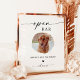 Dieses wunderschöne Open Bar Sign Hotel besticht durch eine wunderbar moderne, minimalistische Eleganz, die Sie bei Ihrer Hochzeit oder einem besonderen Anlass bewundern können. Bearbeiten Sie die meisten Texte einfach, um sie Ihrem Stil anzupassen. Text- und Hintergrundfarben sind vollständig editierbar —> klicken Sie auf die Schaltfläche "Edit Using Design Tool" um zu bearbeiten!