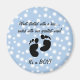 Niedlicher blauer Hintergrund und Babyfußabdruck Entbindungsdesign. Text sagt, WAS MIT EINEM KISS BEGANN.. ENDE MIT UNSEREM BESTEN WÜNSCHEN. Anpassbarer Text, um ihn genau so zu personalisieren, wie Sie ihn gewollt haben. Auf Grußkarten, Einladungen, Tasse, Aufkleber, Porto-Briefmarke, T - Shirt und mehr! PinkInkArt Original!