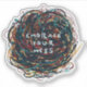 Ein chaotischer Wirbel aus bunten Kritzeln bildet ein kreisförmiges Muster. Das Zentrum zeigt die Worte "Embrace Your Mess" in klarer Blau.