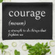 Definition von COURAGE in fett weißem Text auf schwarzem Hintergrund. Die Hintergrundfarbe kann geändert werden.