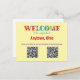 Willkommen neue Freunde und Nachbarn mit dieser hellen Postkarte mit QR-Codes, die mit Ihren lokalen Facebook und Instagram Gruppen verbunden sind. QR Codes können Links zu einer beliebigen URL Ihrer Wahl haben.