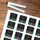 Ein Blatt schwarzer quadratischer Aufkleber, um Ihre Schüler am ersten Schultag willkommen zu heißen. Diese haben farbige Stifte am unteren Rand. Personalisieren Sie sie mit Ihrem Grad und Namen. Farbige Stifte