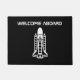 Willkommen an Bord der Weltraum Raketenstapel Doormat . Die sonnige Wohngestaltung für Weltraumfans. Anpassbare Textvorlage Fügen Sie Ihren eigenen Familiennamen oder ein lustiges Angebot hinzu.