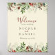 Dieses Welcome Wedding Sign Poster besticht durch seine grünen Waldzweige und Blätter in Aquarellen, rote Heilige Beeren und elegante trendige Schrift. Ideal für Winterhochzeiten.