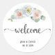 Feine Willkommensaufkleber mit blass-farbenen Rose. Anpassbarer Text/Namen und Datum. Dies kann mit Gegenständen in der Hochzeitskollektion "Feier der Liebe" verwendet werden oder den Text zu Ihrem Anlass ändern, z.B. Geburtstag, Jahrestag oder anderes. Fügen Sie Ihre Mailing oder auf einem Geschenksack hinzu, wenn Ihr Gast an der Rezeption oder bei einer Hochzeitsfeier ankommt. Wenn Sie weitere Anpassungen gewollt haben (Typ, Größe und Farbe des Schriftartes), können Sie dies im Designwerkzeug tun. Erhältlich in verschiedenen Größen und Formen.