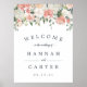 Herzlich willkommen auf Ihrer Hochzeit mit unserem Blumenposter aus dem Mittelsommer, das eine obere Grenze von Aquarellfarben und Pfirsichblättern, Rosa, Elfenbein und Pfefferminzgrün aufweist. Fügen Sie Ihre Namen, das Hochzeitdatum und den persönlichen Willkommenstext mit den angegebenen Feldern hinzu.