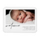 Moderner Foto Baby Birth Announcement Magnet. Design mit Begrüßungsschrift, Single-Foto des Babys, Geburtsdaten, Datum und Namen auf der Vorderseite.