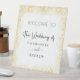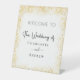 Begrüßung der Glitzern mit weißem Hochzeitsgold Sockelschild