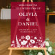 Ein reichhaltiges Bordeaux- und Blütendesign auf mattiertem Acryl, ideal für romantische Winterhochzeiten. Tiefe Farbtöne und elegante Schriften schaffen ein warmes, luxuriöses Ambiente.