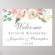 Beginnen Sie Ihre Hochzeitsgäste mit diesem eleganten Blumenposter, das mit schönen rosa Rosen und Pfannkuchen dekoriert ist. Eine schöne Ergänzung zu einer Frühjahr- oder Sommerhochzeit.