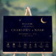 Das Design zeichnet sich durch eine schlichte und elegante Goldfolie und Sterne aus, die sanft glänzen und Set vor Mitternachtsuntergrund bieten. Die Einladung benutzt klassische Serifentypografie, die eine traditionelle und formale Touch mit ihrem gepflegten und klaren Stil hinzufügt.