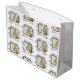 Personalisieren Sie diese bezaubernde Giraffe Baby Dusche Geschenktasche mit Babyname. Handschrift in schwarzer Tinte, lustige Grunge Sketch Kunst. Für Jungs oder Mädchen. Ursprüngliches Design von SuzanneHeinCreations © 2022 Suzanne Hein Alle Rechte vorbehalten.