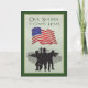 Notieren Sie einen zurückkehrenden Soldaten, der in der Armee Dienst getan hat, dass sie Zuhause nach aktiver Pflicht zurückkehren. Mit einer Silhouette im Hintergrund und Soldaten in Aktion und der amerikanischen Flagge, ist diese Karte perfekt, um lassen, jeder weiß, dass sie zurückkehren Zuhause aus dem Dienst. Design © 2015 Julia Bryant.