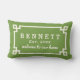 Das stilvolle Outdoor-Kissendesign besticht durch einen griechischen Dekorrahmen mit modernem, weißem Familiennamen, das etablierte Jahr und "Willkommen auf unserer Zuhause". Die dunkelkalkgrüne Hintergrundfarbe kann individuell auf Ihre Zuhause und Veranda abgestimmt werden.
