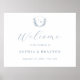 Dusty Blue Floral Wappen Monogram Wedding Welcome Poster