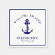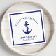 Nautische Papierservietten für die Gäste Ihres Bootes, die eine marineblau Abbildung eines Ankeres und "Welcome Bard" und den Namen und die Lage Ihres Bootes in eleganter marineblauer Typografie und Schrift enthalten.