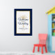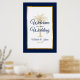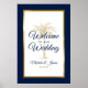 Passen Sie dieses blaue und goldene Schild "Willkommen bei unserer Hochzeit" mit Ihrer eigenen Touch an. Dieses moderne Design besticht durch modernes Drehbuch, marineblauen und goldenen Text mit den Namen der Braut und des Bräutigams und dem Hochzeitstermin, eine künstlerische Palme und einen metallisch goldenen Rahmen mit marineblauer blauer Grenze. Wenn Sie Hilfe oder passende Artikel benötigen, kontaktieren Sie mich bitte.