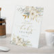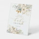 Das neutrale Baby in Bloom Baby Dusche Begrüßungszeichen beinhaltet wunderschöne Elfenbein, goldblaue und blumengeschmückte Blume und Grünpflanzen sowie moderne Kalligraphie.