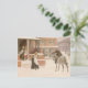 Die Begrüßung des Postmanns durch Robert Walker Macbeth (1848-1910) ist ein Vintages Viktorianisches Portraitbild. Eine Frau sucht nach der Post, die vom Postboten auf einem Pferd zugestellt wird. Der Briefträger übergibt der Dame des Hauses Weihnachtsbriefe während eines Schneesturms im Winter.