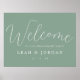 Elegante Sage Green Script Engagement Party Willkommenspender