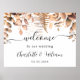 Herzlich willkommen bei einer eleganten Hochzeit im bohischen Stil. Ein schick weißer Hintergrund. Dekoriert mit den wasserfarbenen Eukalyptus-Blätter, Waldfarnen. Personalisieren und fügen Sie die Namen der Braut und Bräutigam und ein Datum. Herzlich willkommen geschrieben.