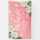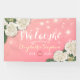 Begrüßung Willkommensbanner Vorlagen - Elegante weiße Wasserfarbe Hydrangea Blume und String Lights auf rosa strahlenden Hintergrund. Ein perfektes Design für Ihren großen Tag! Alle Textstile, Farben, Größen können an Ihre Bedürfnisse angepasst werden.