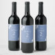 Dieses elegante Hochzeitsflaschenlabel besticht durch ein zeitgenössisches Set an Schriftart und blühenden Bildern vor einem eleganten, staubblauen Hintergrund. Dieser Tag ist Teil einer modernen Blumenhochzeitsammlung in trendigem Blau und Weiß.